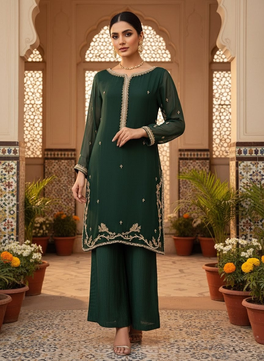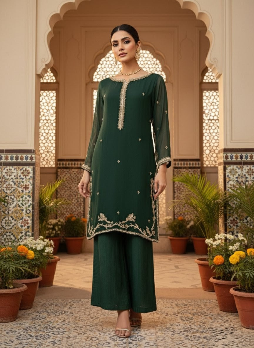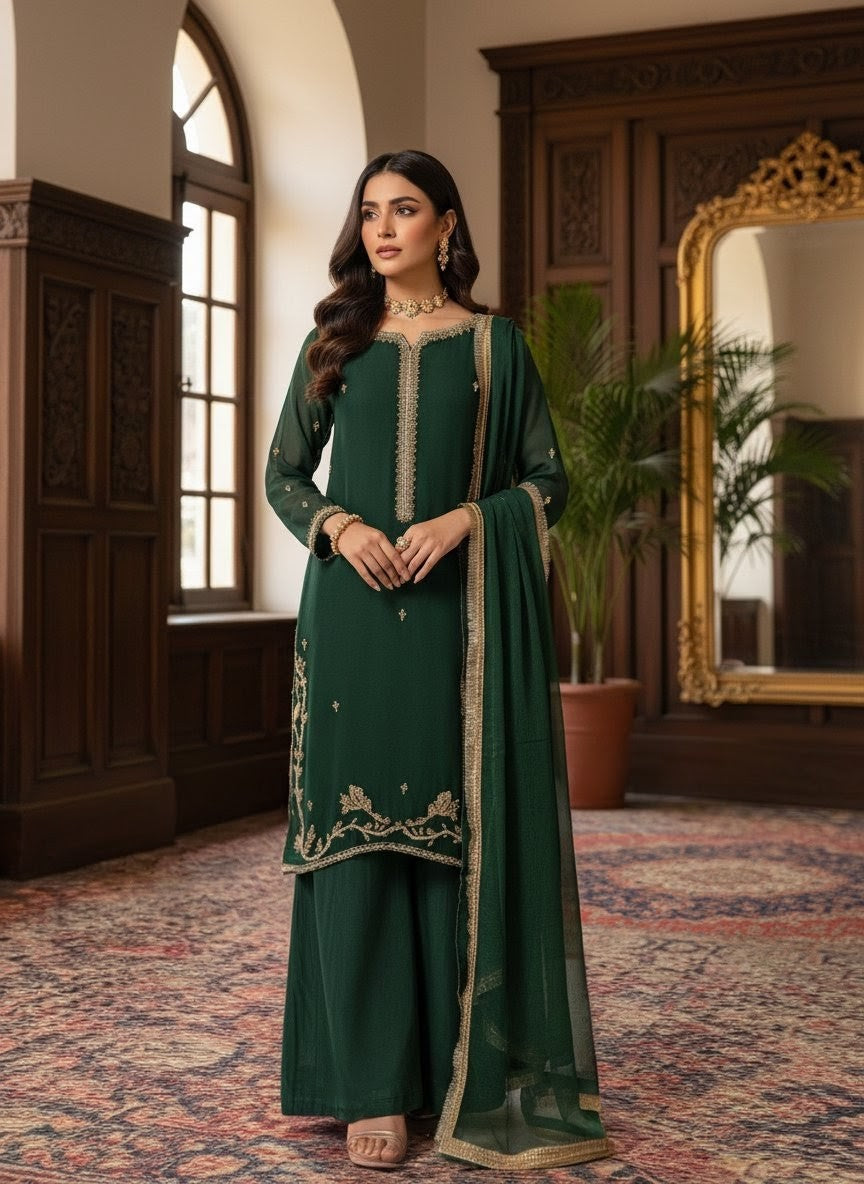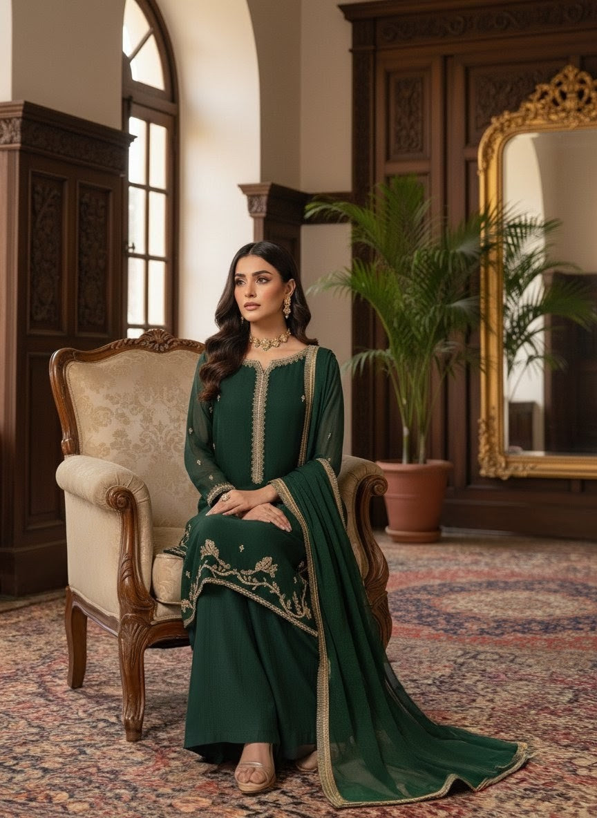 Fabric: High-grade Premium Chiffon (Shirt & Dupatta) with a comfortable inner lining; matching premium fabric for trousers.